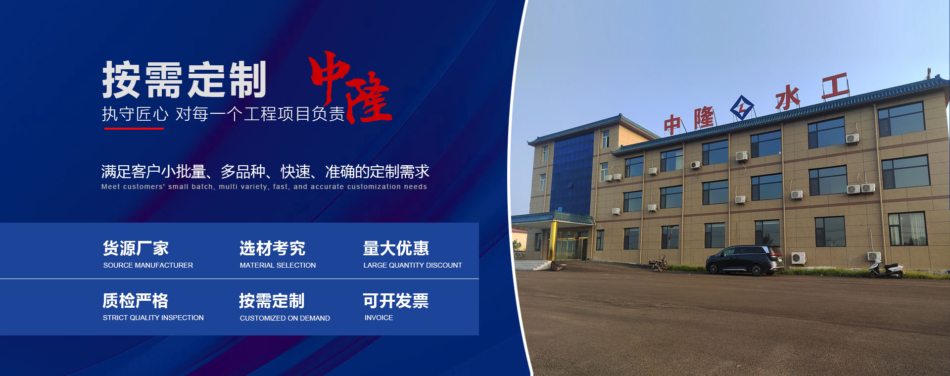邢臺市中隆水工設備有限公司位于新河縣九龍工業園區占地面積20000平方米。北鄰北環(huán)路、西鄰西環(huán)路,交通便利。 公司堅持,依法經營,誠信服務的宗旨,尋求合作共創(chuàng)輝煌。融科研制造銷售安裝,服務為一體的水工設備專業制造公司。優(yōu)質制造設備,規(guī)格齊全,產品檢測體系完整,各項技術指標均達到行業標準,給客戶提供無憂合作! 主要產品有: &n···